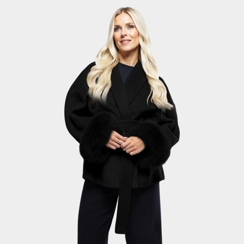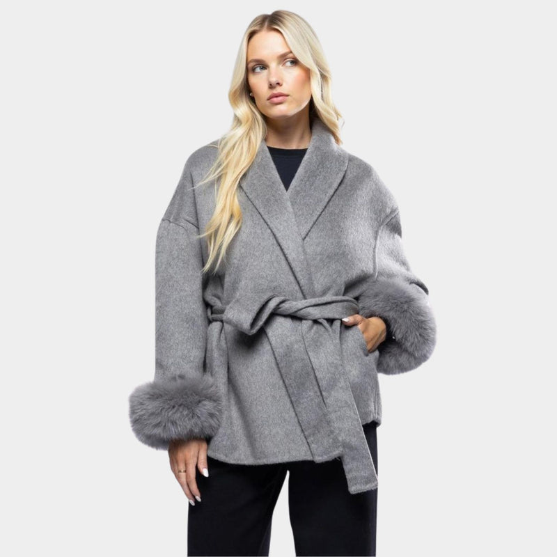 The Calista Fur Cuff Coat embodies the ideal blend of luxury and practicality. Its fluid cut and premium wool fabric provide warmth and comfort, while the faux-fur cuffs add a modern, chic touch. A coat that is perfect for any occasion.